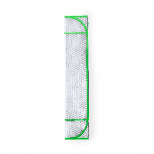Pare soleil en aluminium avec bulle des deux côtés. Finition argent métallisé, avec bordures de couleurs