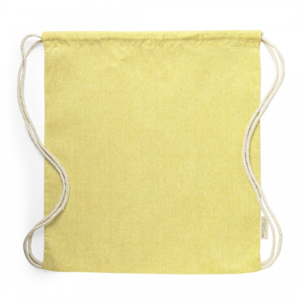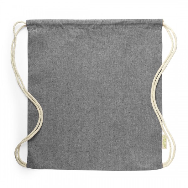 Sac à dos à cordes de gamme nature en matériau coton recyclé de 120 g/m2. Cordes auto-grippantes en coton, avec éco distinctif sur étiquette latérale et Résistance jusqu’à 9kg de poids.