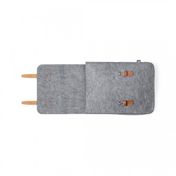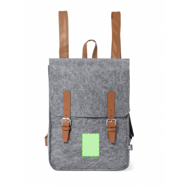 Sac à dos design en feutre RPET résistant, avec sangles de fermeture, poignée de transport et bretelles en similicuir. Grand compartiment principal, rabat avec bretelles réglables et fermeture à boucle métallique. Avec bretelles réglables et logo RPET sur l'étiquette extérieure.