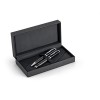 Set comprenant un stylo rollerball et un stylo à bille en métal et en fibre de carbone, tous deux munis d'un clip.