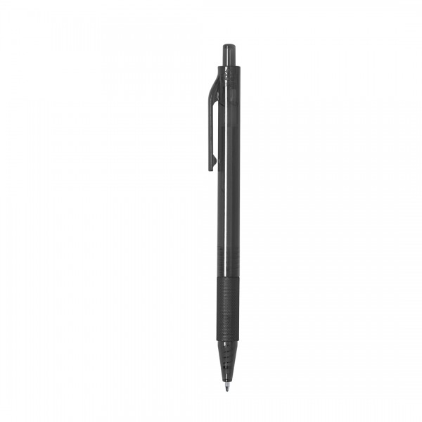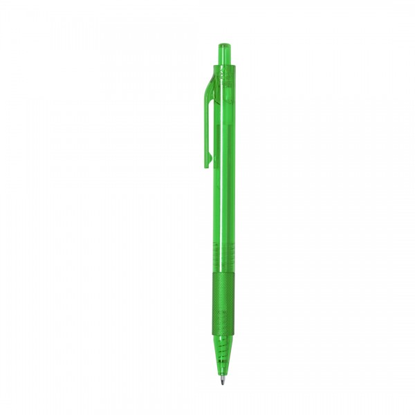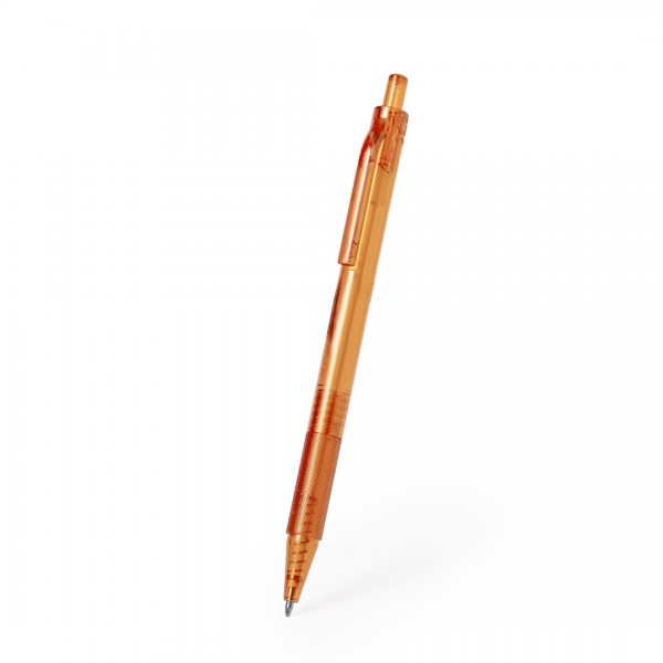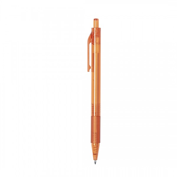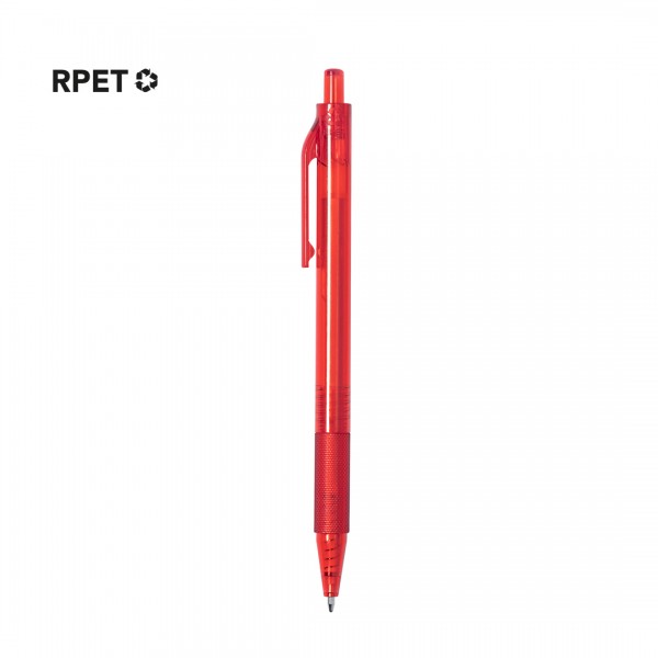 Stylo à poussoir en RPET. Corps transparent à finition douce et prise en main assortie.