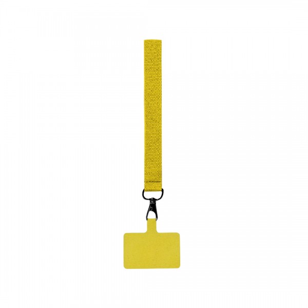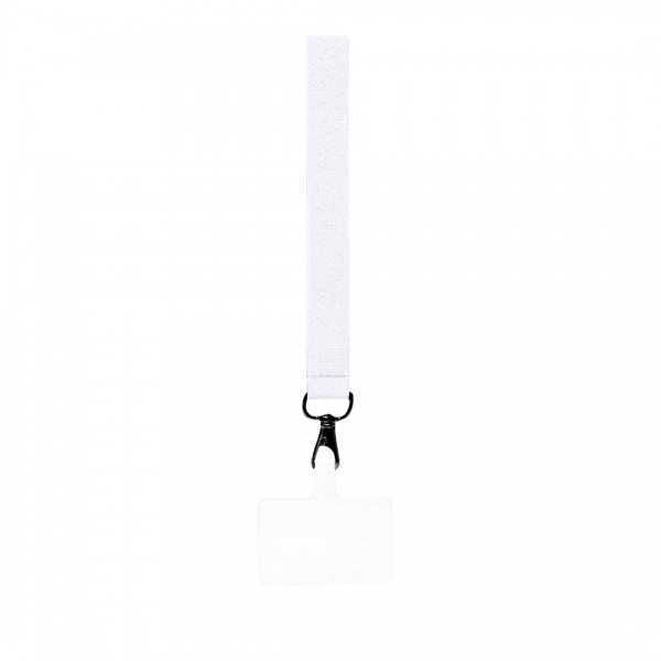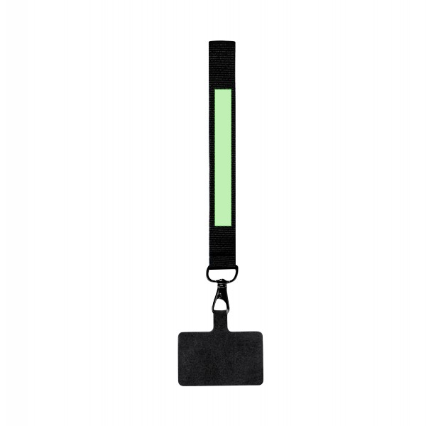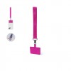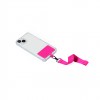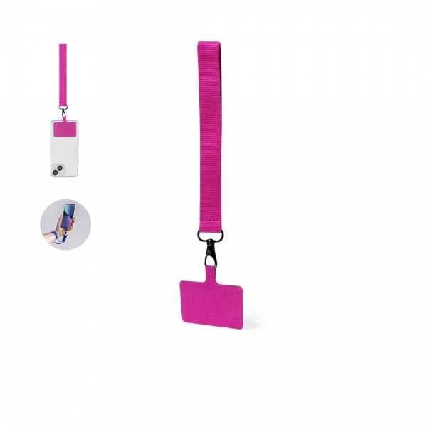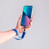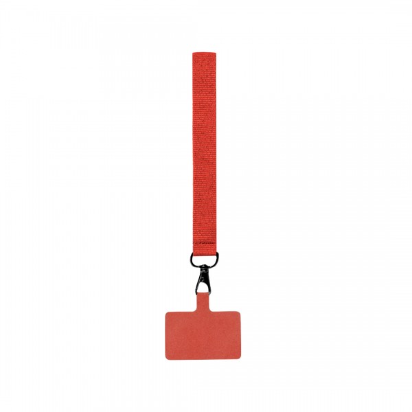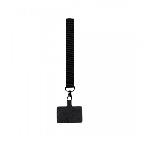 Bracelet support original en polyester souple, adaptable pour tous les types de poignets et avec accessoire de transport pour placer entre le boîtier et le smartphone. Ruban de transport assorti et mousqueton métallique pivotant en couleur noire.