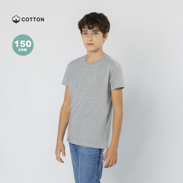 T-shirt enfant unisexe à manches courtes, confectionné en doux coton uni 100 % 150 g/m². Avec coutures latérales.