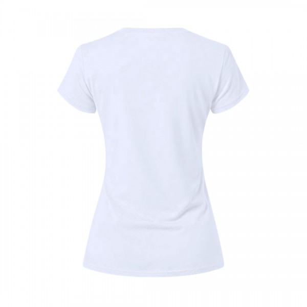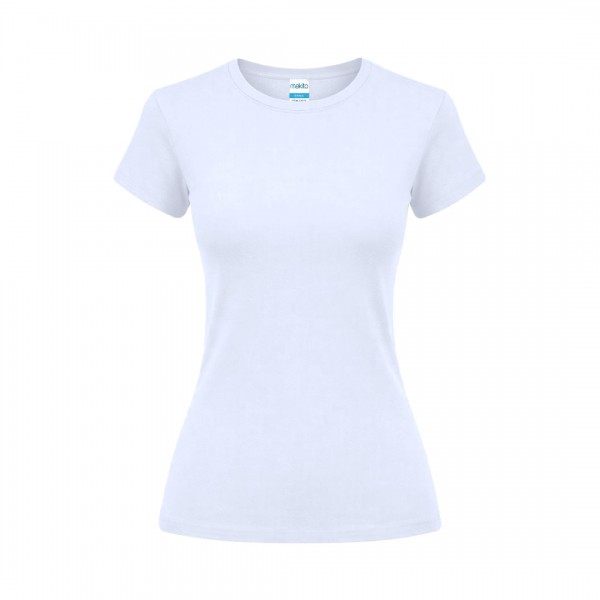 T-shirt à manches courtes, coupe féminine, confectionnée en doux coton uni 100 % 150 g/m². Avec coutures latérales.